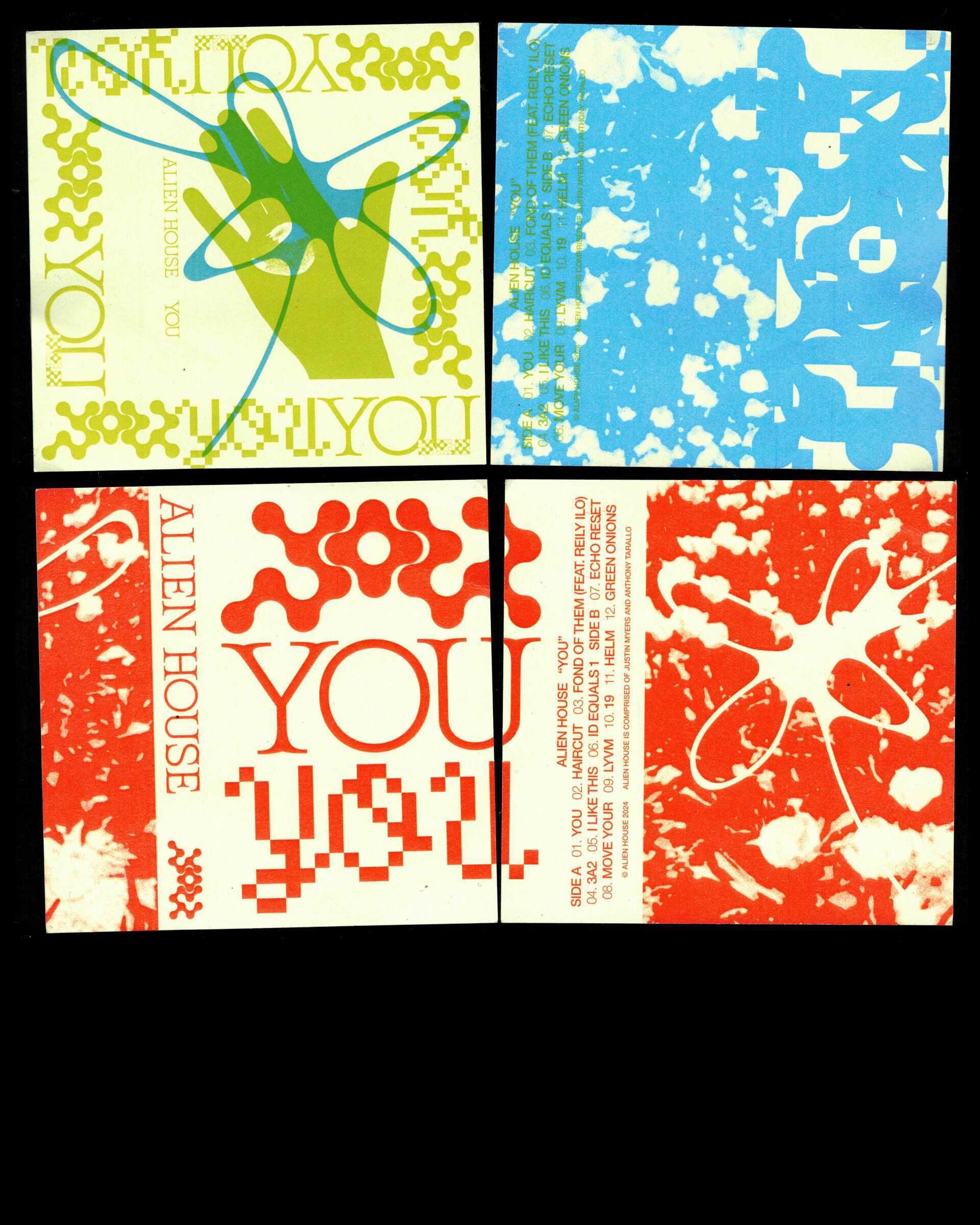 Album, singles, and merch design for Tampa-based electronic duo Alien House's album "You".
