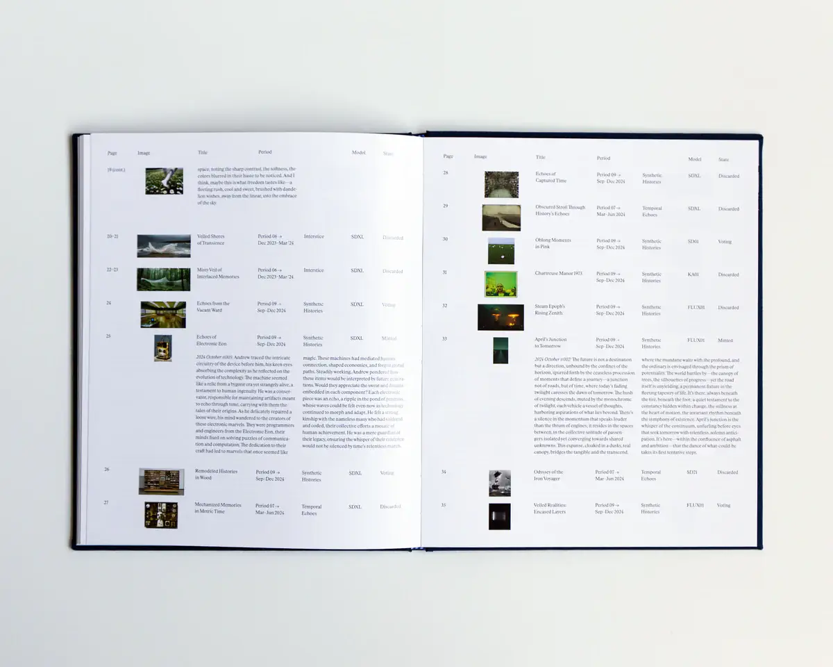 Book design for Botto's monograph "Neurealism: Botto's Photographic Output from 2022-2024"