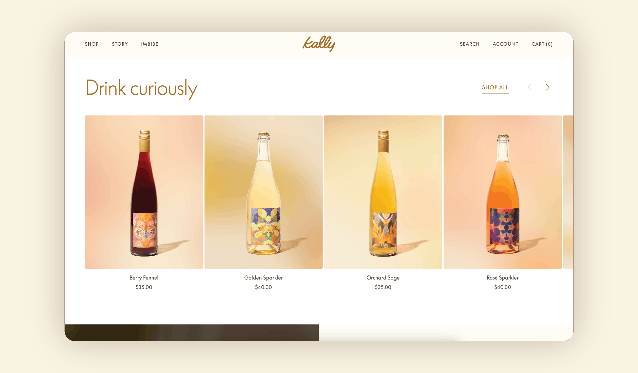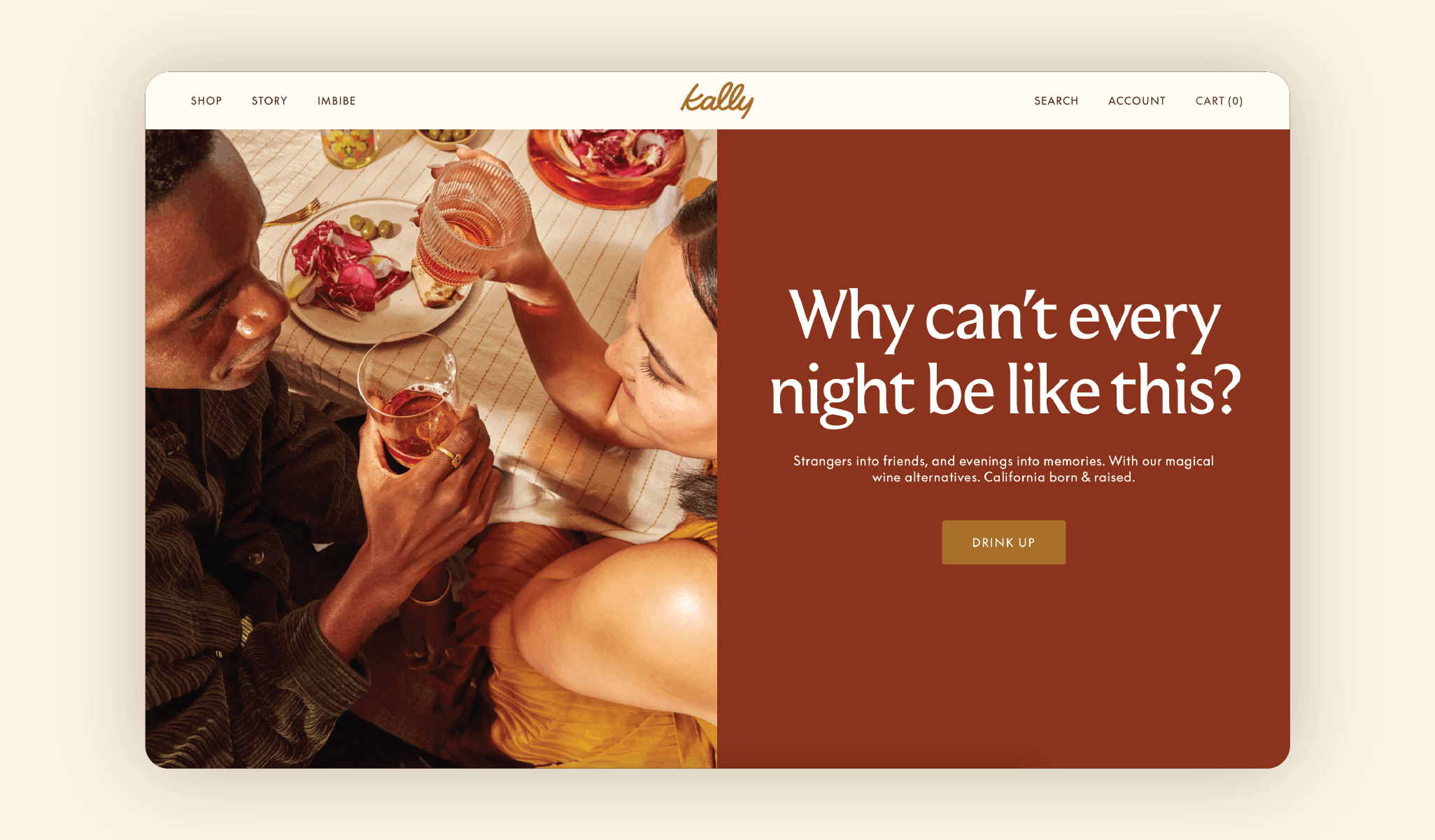 Art direction and website design for California-based non-alcoholic wine brand Kally.
