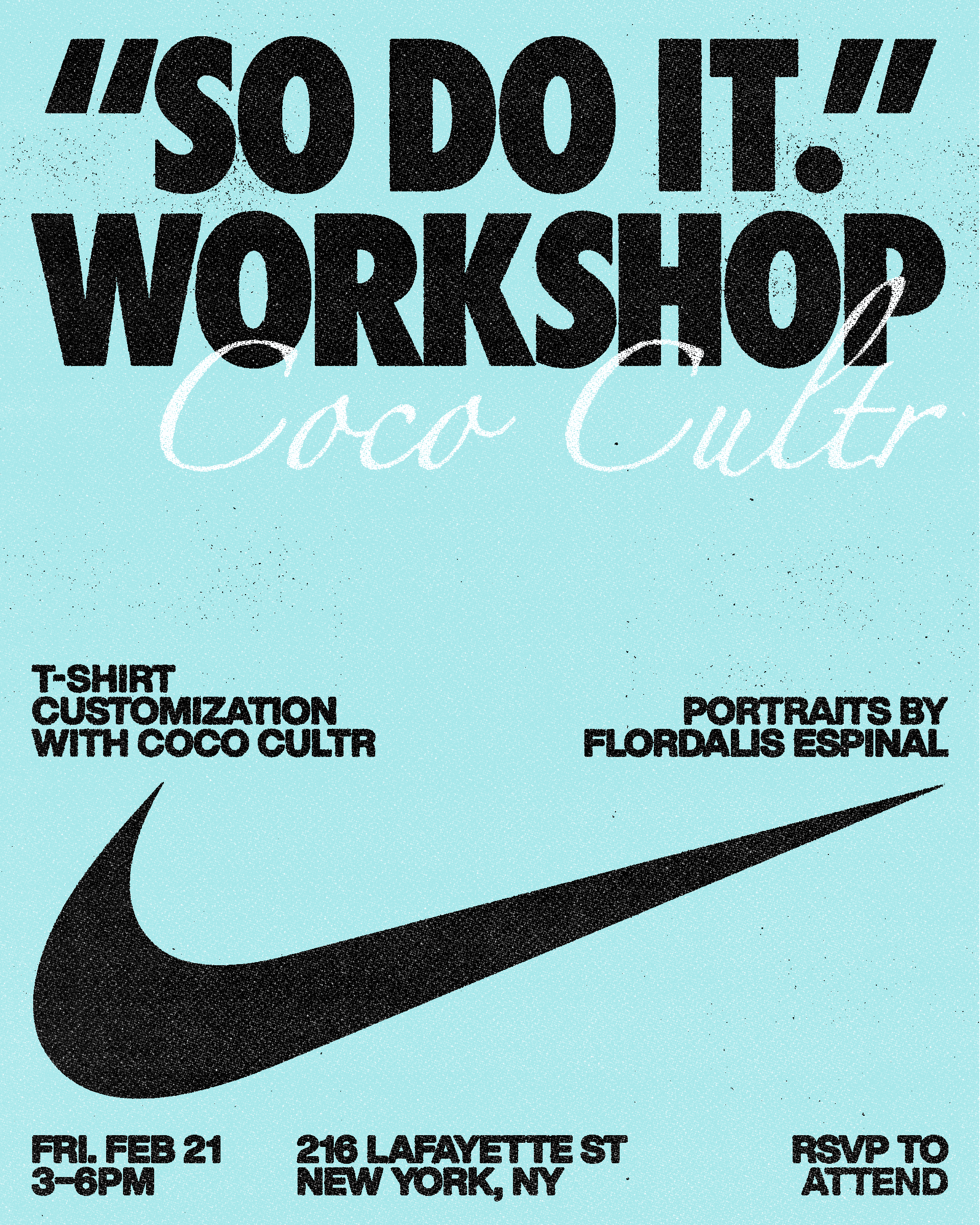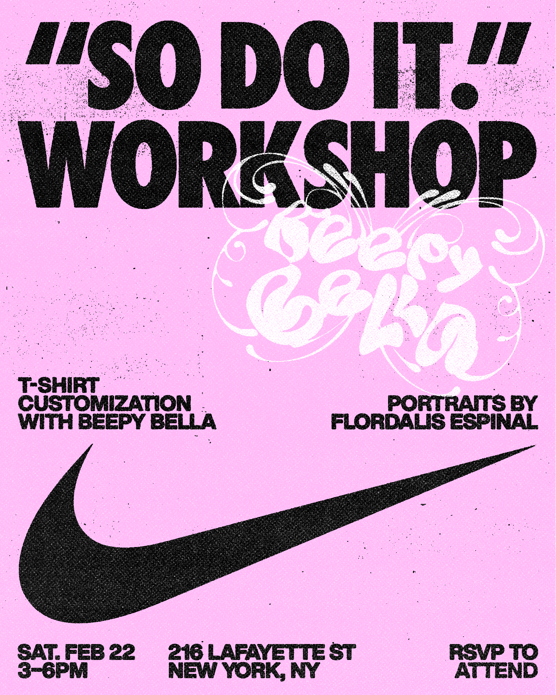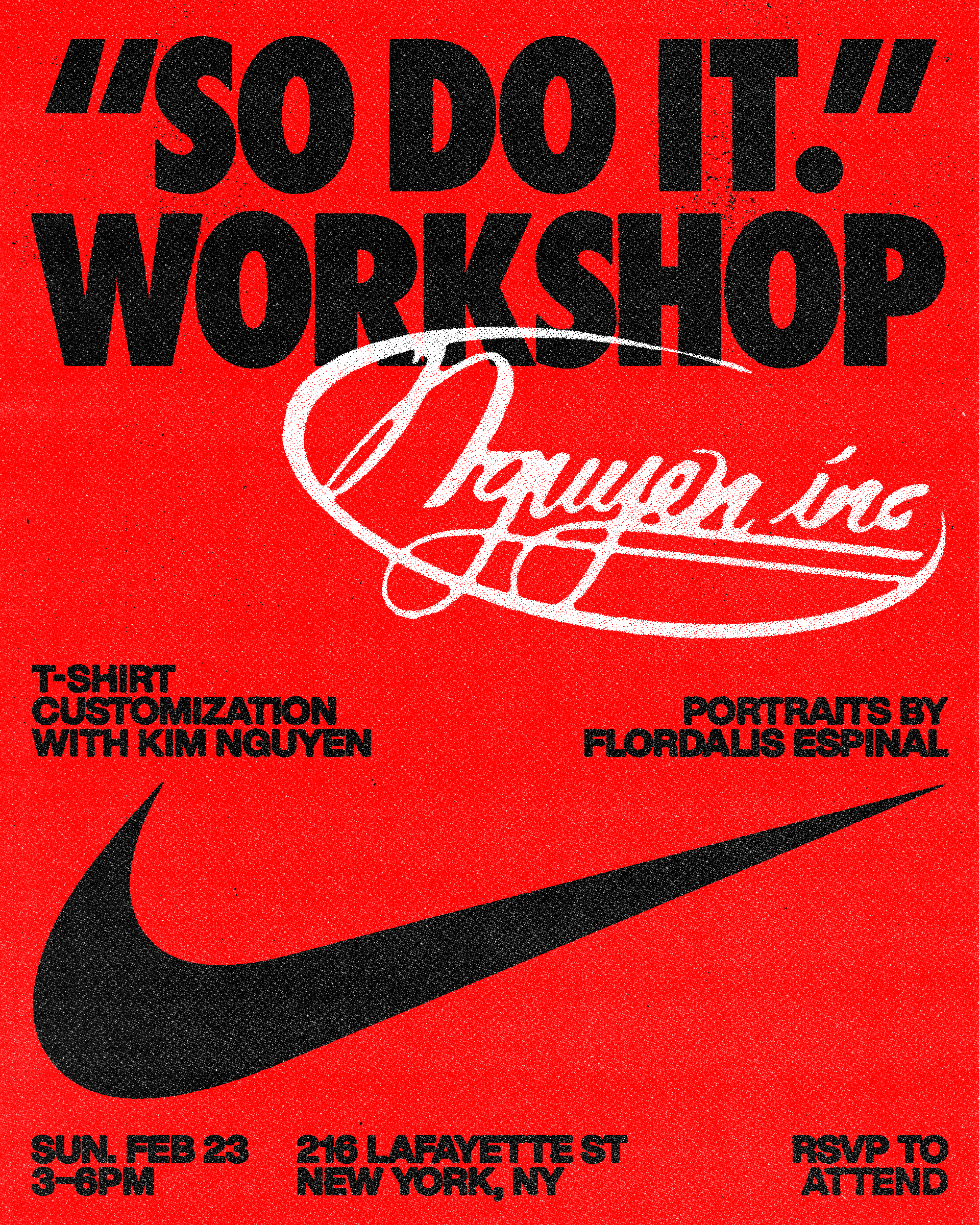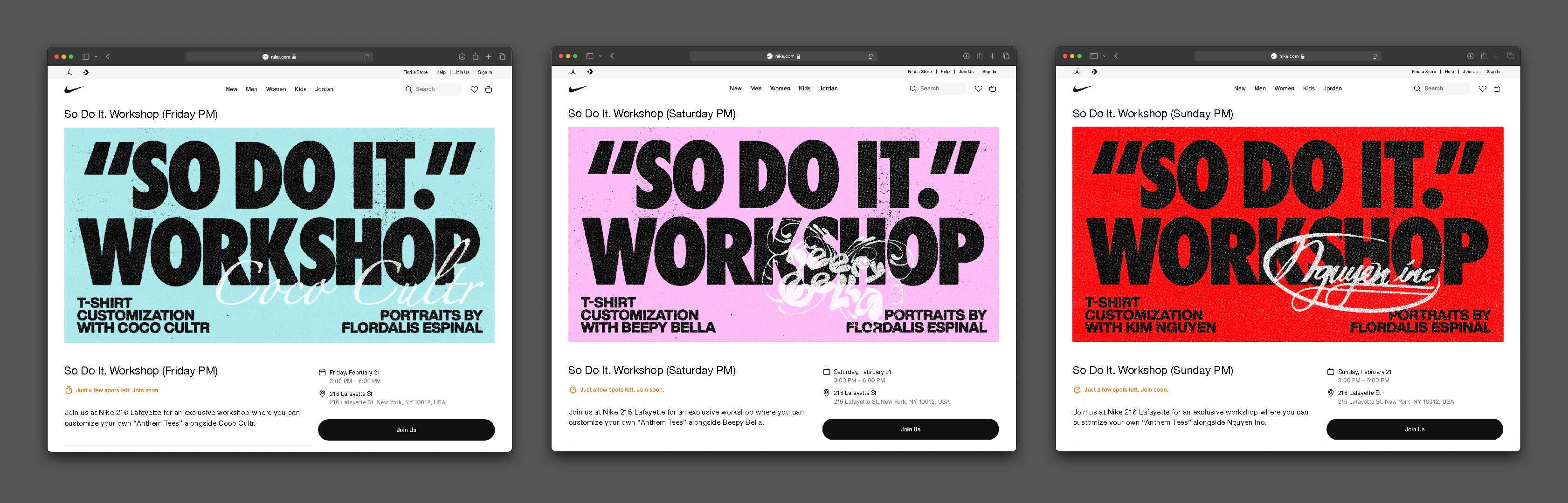 Design for Nike's "So Do It" event series, featuring customization workshops with with Nguyen Inc, Beepy Bella, and Coco Cultr.