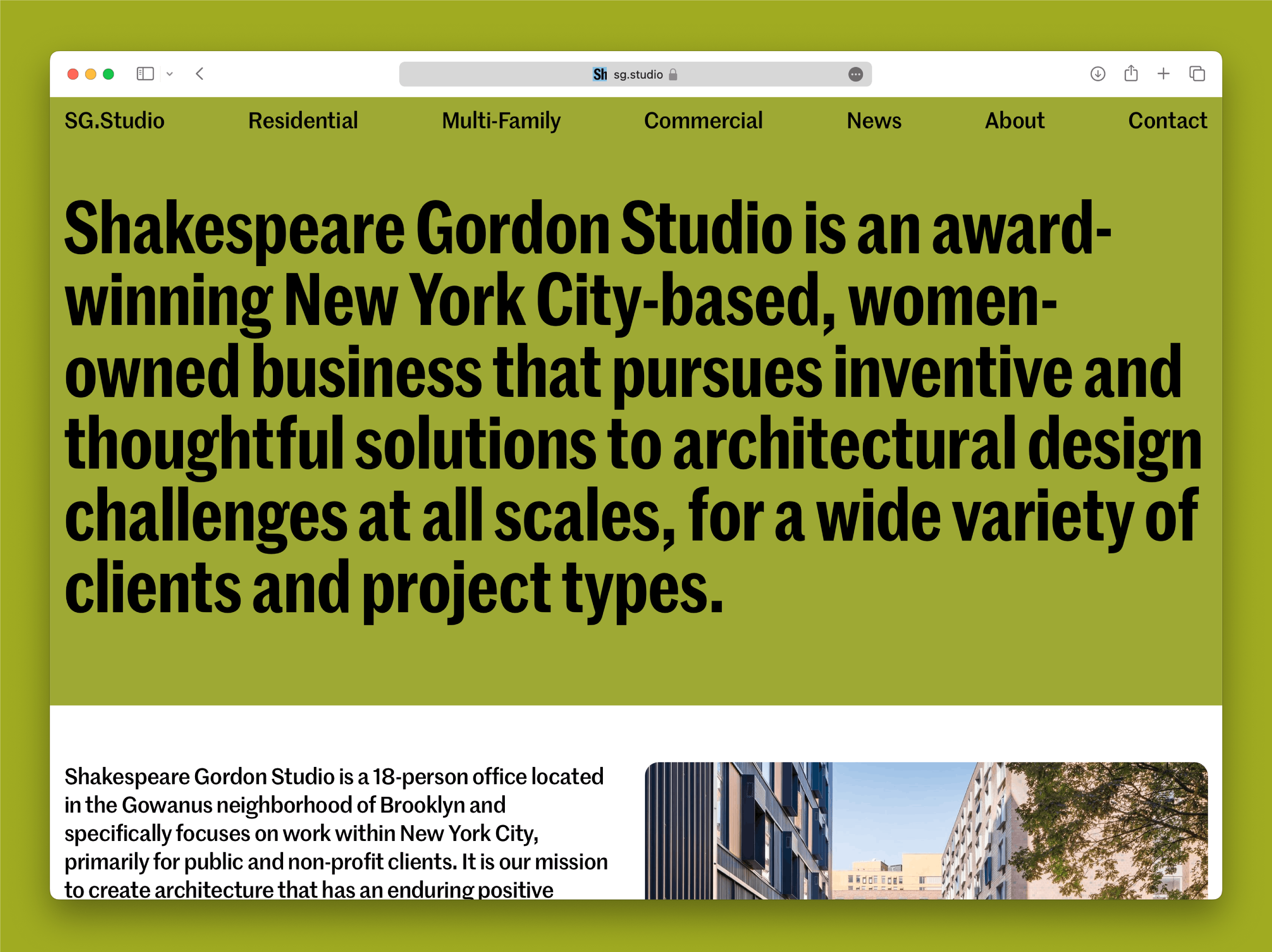 Logo, identity, and website design for Brooklyn-based architecture firm Shakespeare Gordon Studio.